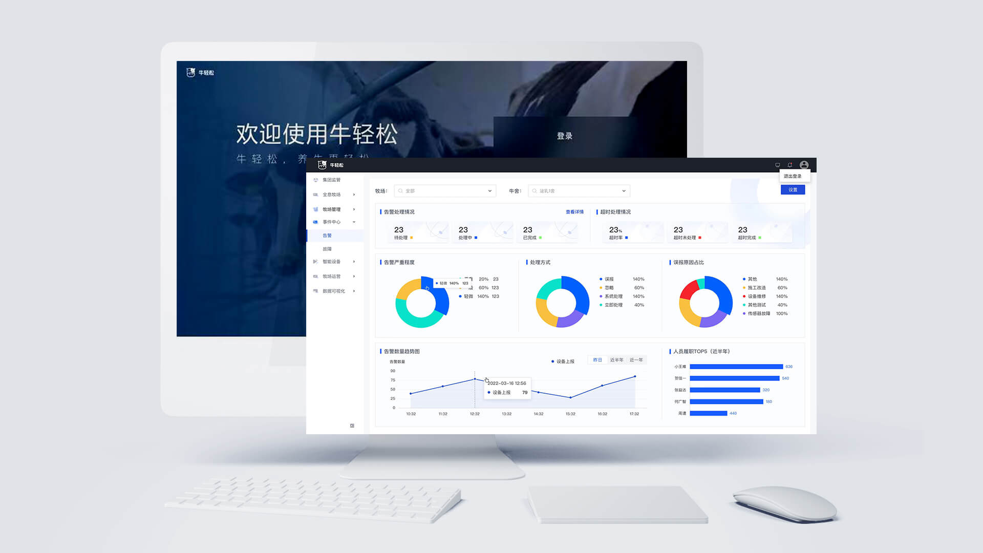 牛輕松對牧場的智能風(fēng)機系統(tǒng)、噴淋系統(tǒng)、視頻監(jiān)控系統(tǒng)、智能照明系統(tǒng)、能源監(jiān)測系統(tǒng)、環(huán)境監(jiān)測系統(tǒng)、工單系統(tǒng)等進(jìn)行統(tǒng)一的管理與聯(lián)動配置。產(chǎn)品的應(yīng)用實現(xiàn)牧場內(nèi)所有設(shè)備的一鍵全連、協(xié)同聯(lián)動及可視化管理,輔助牧場能夠綠色的、高效的、可持續(xù)盈利的長足發(fā)展。